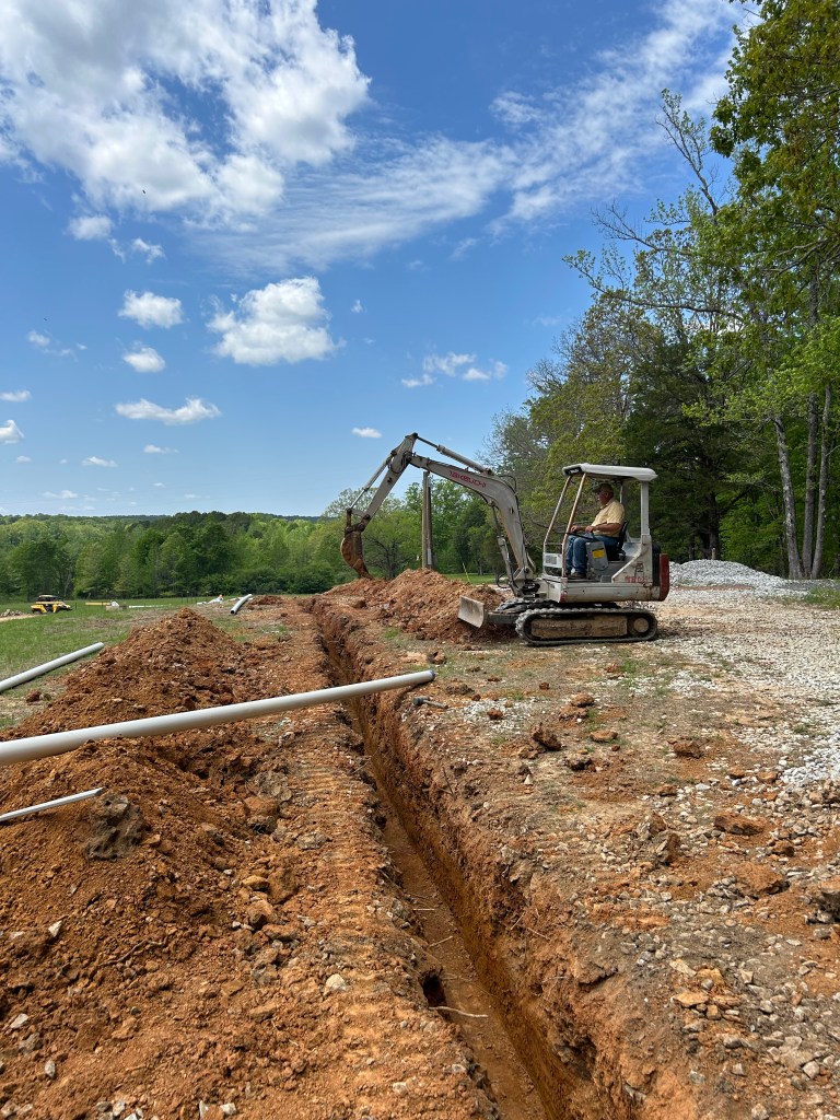 We currently have 10 campsites complete with water, electricity, and sewage drops. Due to all of the rain, we are still covering pipes and fine-tuning the dirt work around the sites.