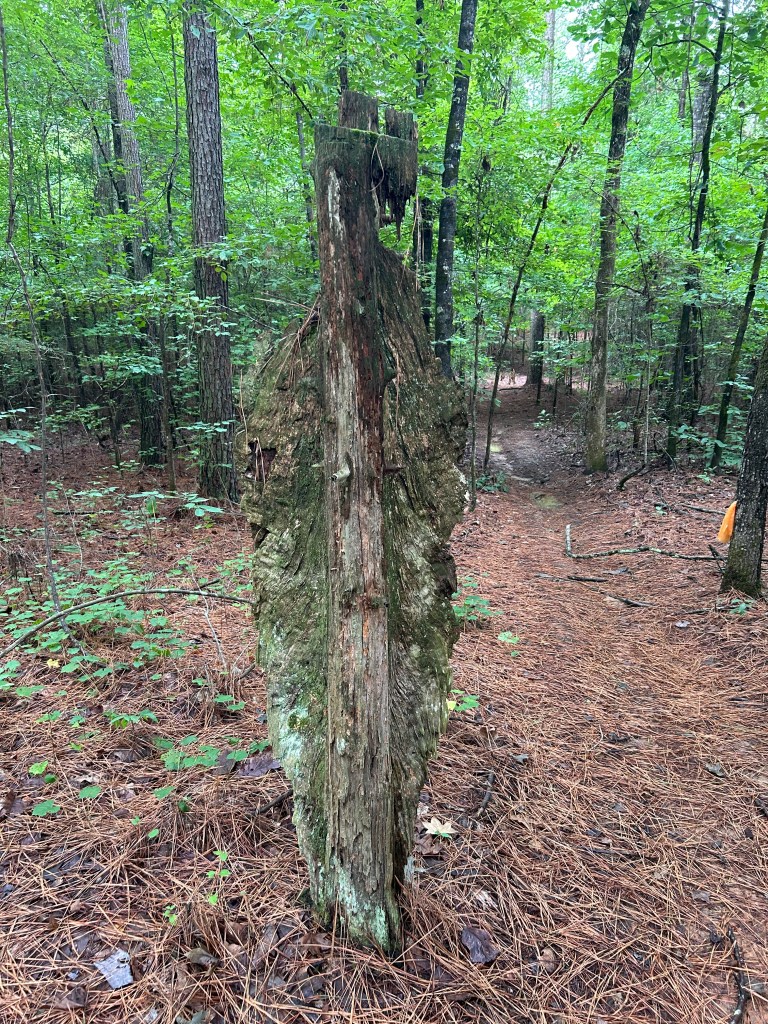 The trail passes by this huge lighter pine stump. He is well over 5 feet tall. I think he needs a name?
