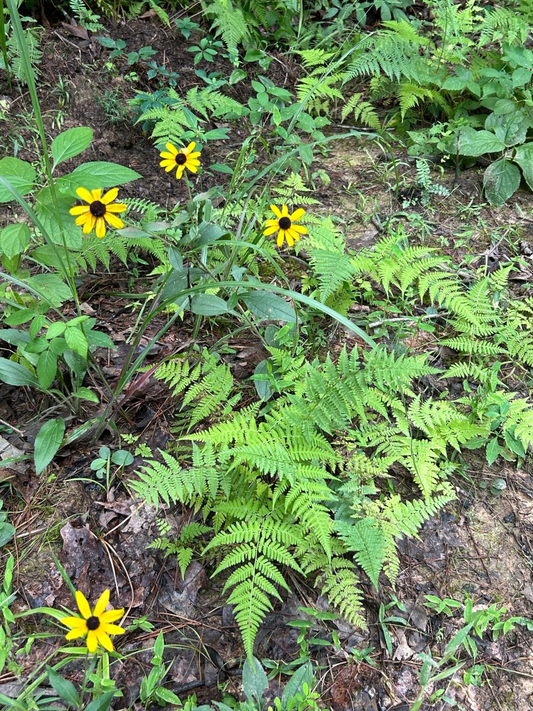 I did not expect to see these black-eyed susans blooming in the woods! I guess enough light made its way through the canopy to stir a seed or two to life!
