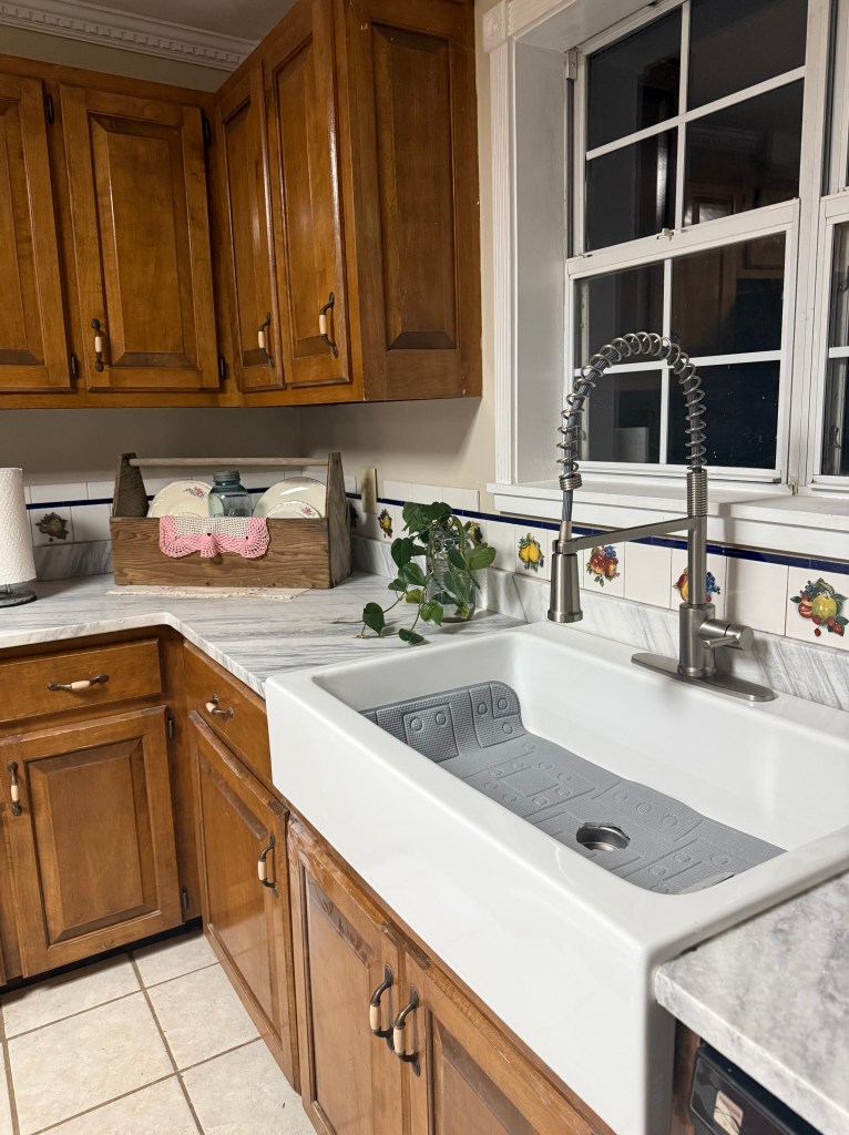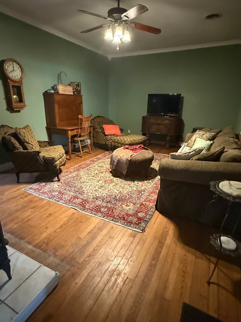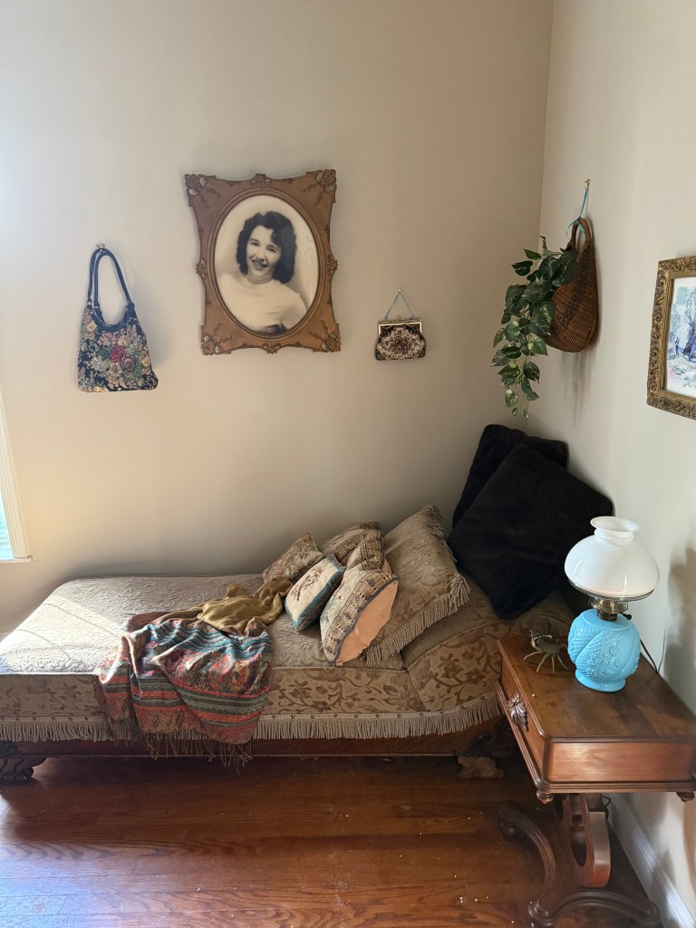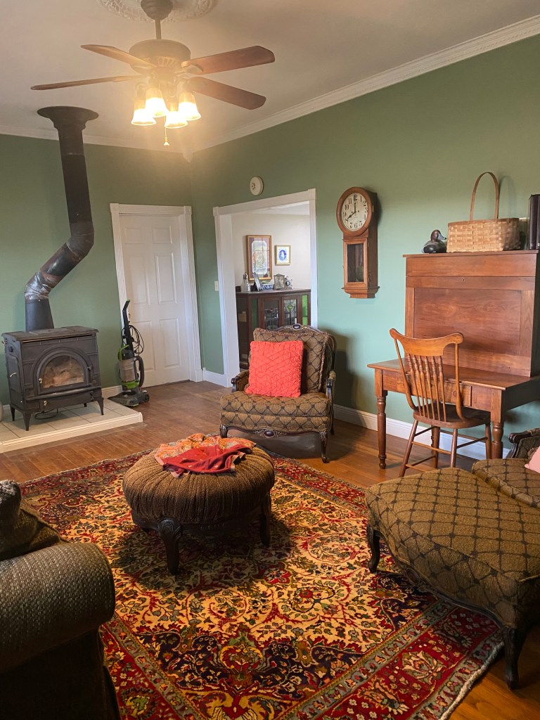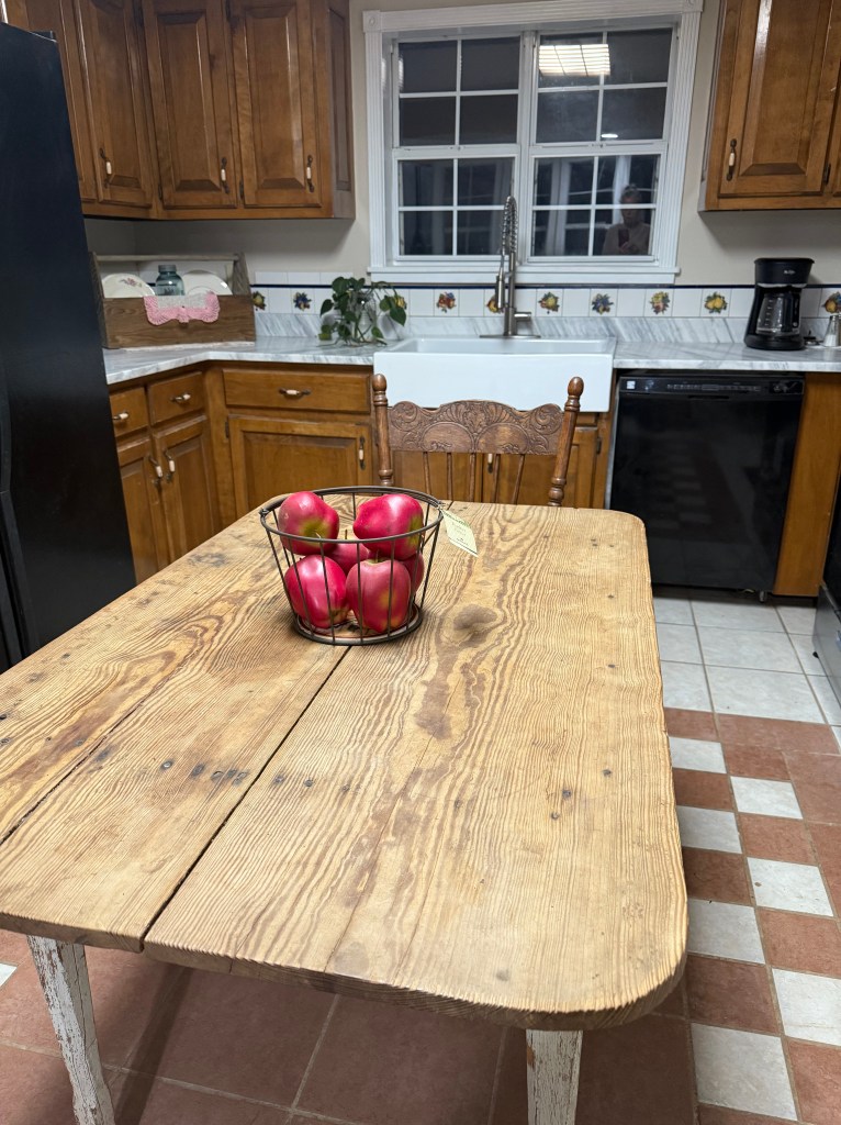 The farmhouse table in the kitchen will seat 2-4. It was built by my grandfather for my grandmother when they married in 1919.